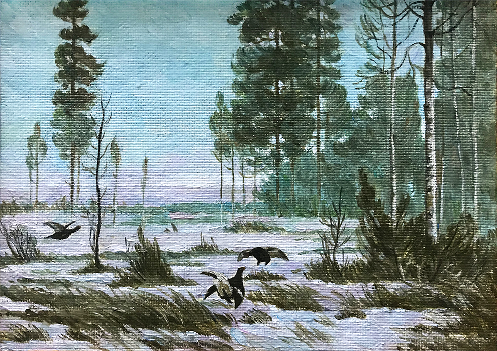 Художник: Ю. Голубев / Год создания: 2018 г. / Размер (ширина х высота): 30 х 20 см / Техника: оргалит, масло / Уникальность: уникальная работа / Оформление: оргалит, багет / Цена: 1300 ₽